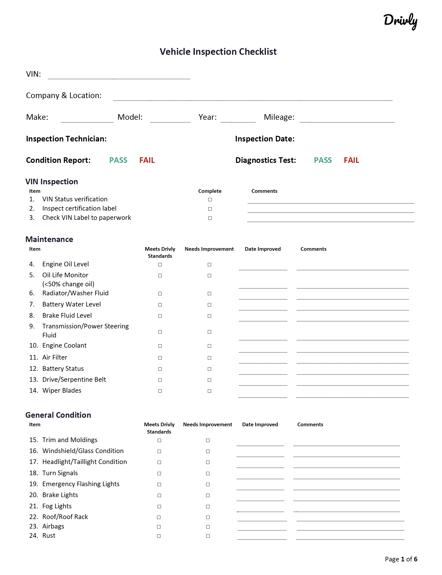 Once the inspection is completed, you will receive a link to the vehicle inspection report. This report will contain detailed information about the condition of the vehicle, including any issues that were found during the inspection:Inspection Checklist Form